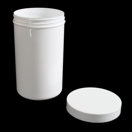 20ml to 2 litre white plastic screw top jars. Manufactured in France and made from quality white injection-moulded polypropylene (PP), which has excellent chemical resistance.